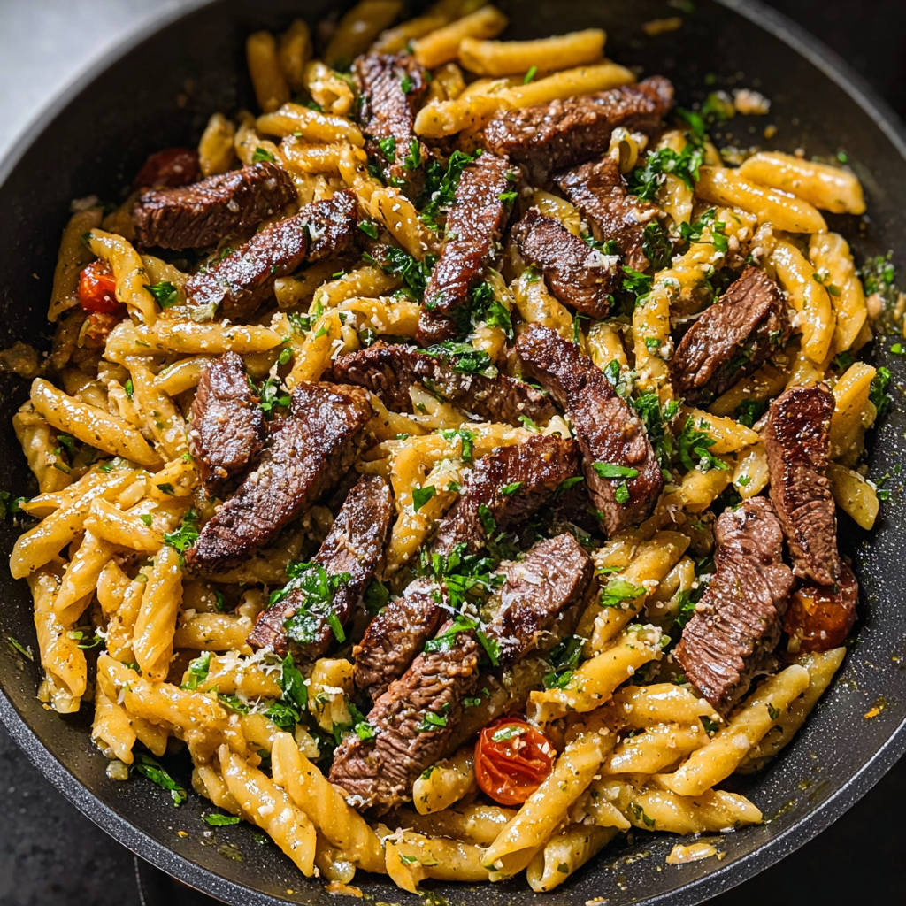 If you’re a fan of creamy pasta and perfectly seared steak, this dish delivers the best of both worlds — all in one skillet!