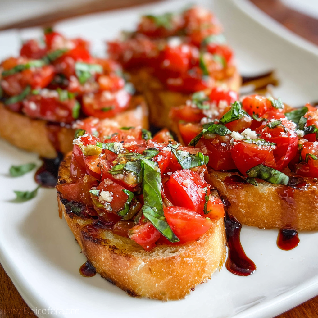 There’s something magical about a plate of fresh Italian bruschetta — juicy ripe tomatoes, fragrant basil, and a touch of garlic, all piled high on crispy toasted bread. But the real secret? Those irresistible parmesan toasts and a drizzle of rich balsamic glaze that take this appetizer over the top.