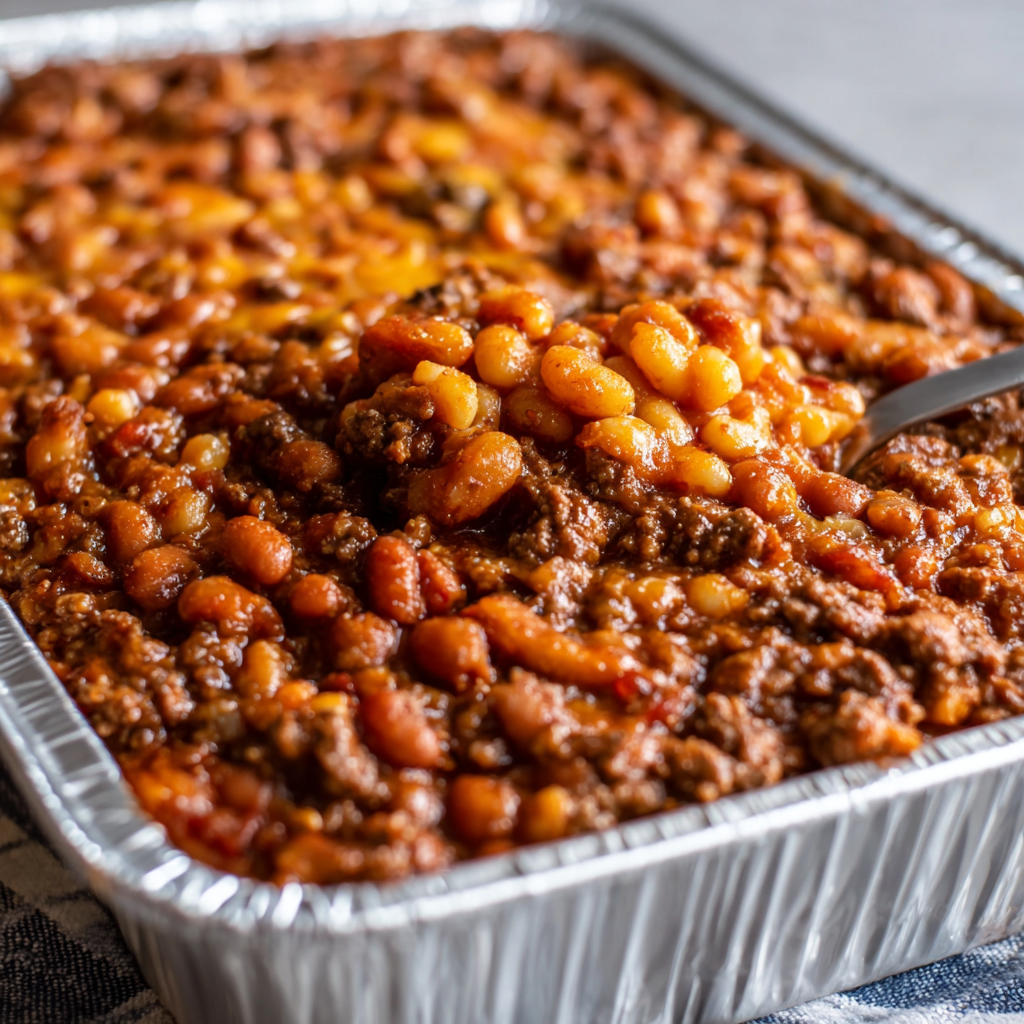 Baked beans and ground beef casseroles have long roots in American home cooking, especially across the Midwest and the South, where stretching simple pantry staples into hearty meals was tradition. The blend of sweet, savory, and smoky flavors has made it a timeless comfort classic passed from one generation to the next.