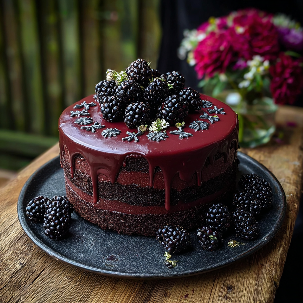 This cake is not only stunning to look at, but it’s also irresistibly delicious. The moist, cocoa-infused cake layers balance perfectly with the tangy sweetness of blackberries, while the light cream topping adds an airy finish. Whether you’re hosting a gothic-themed event, celebrating a special occasion, or simply indulging your dessert cravings, this cake captures both elegance and mystery in every bite.