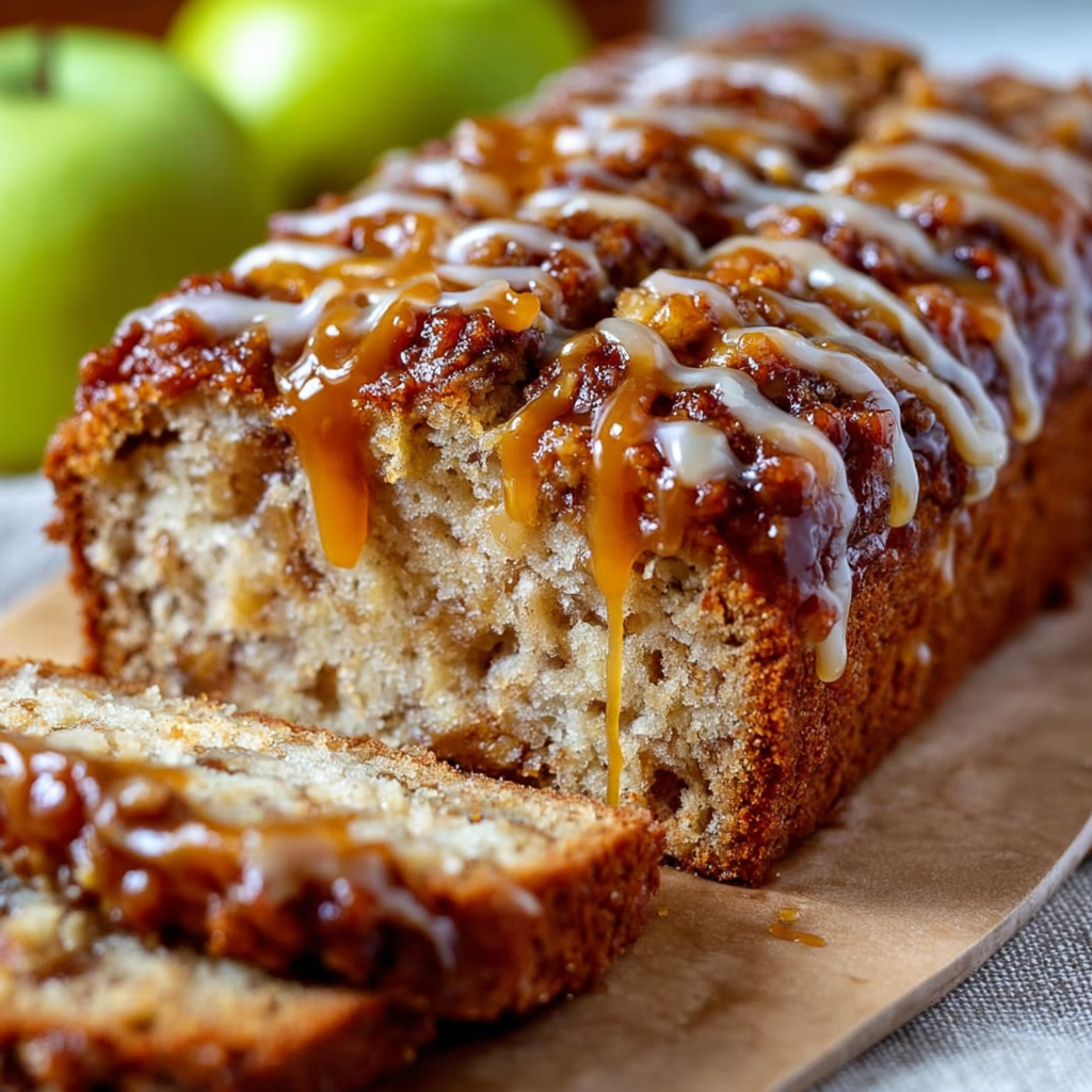 Warm, cozy, and full of fall flavor—this Caramel Apple Fritter Bread is everything you love about a classic apple fritter, transformed into a soft, tender quick bread. No frying required! Each slice is packed with juicy cinnamon-sugar apples and finished with a rich caramel drizzle that makes your kitchen smell like a bakery on a crisp autumn morning.