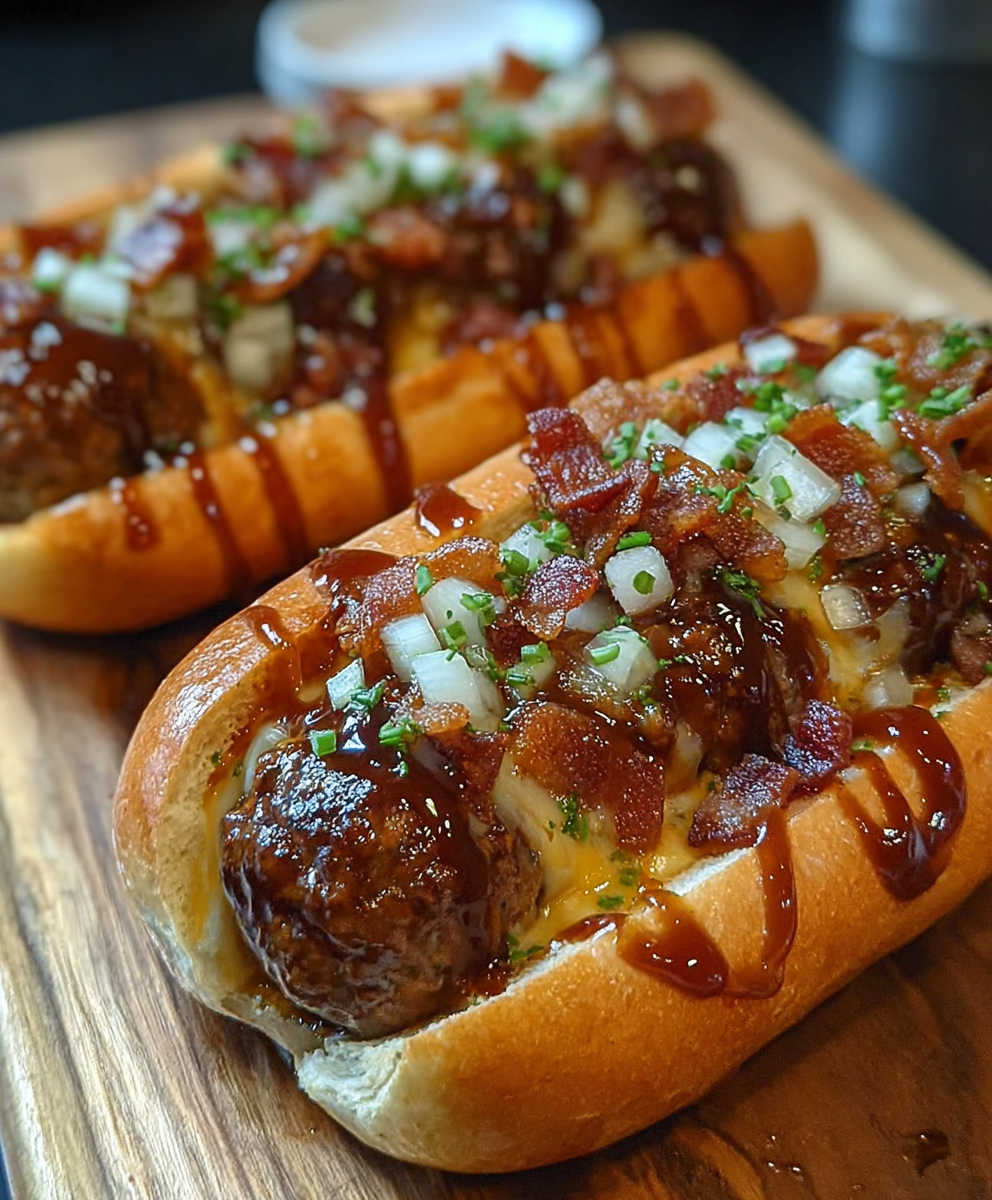 Bourbon BBQ Bacon Cheeseburger Meatball Subs