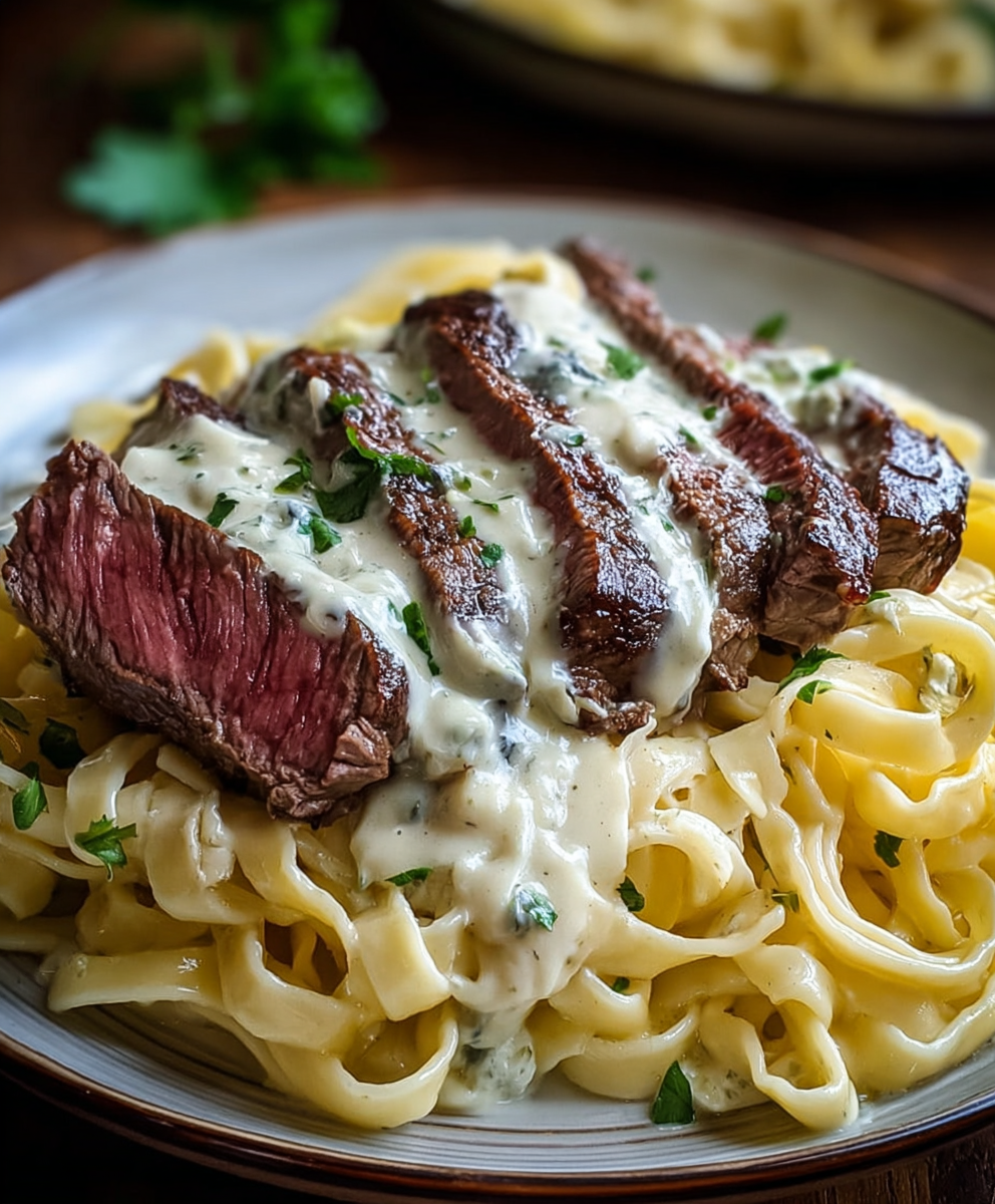 Savory Steak Gorgonzola Alfredo with Creamy Parmesan Sauce