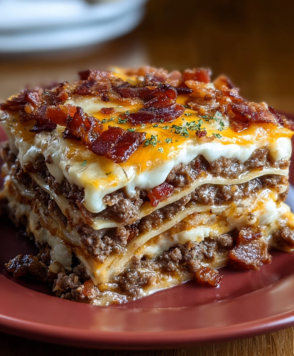 Parmesan Garlic Bacon Cheeseburger Lasagna