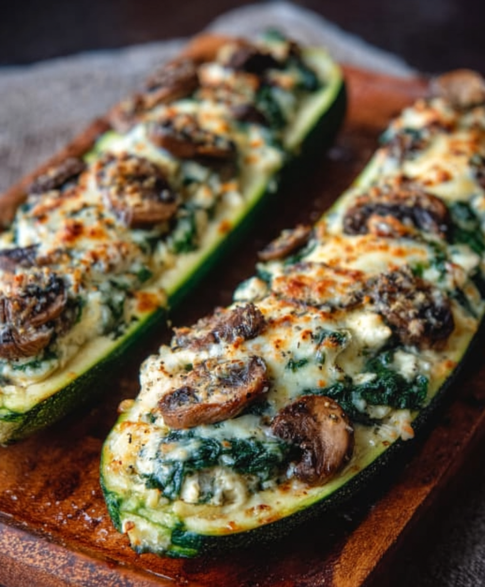 Spinach, Mushroom, and Ricotta Stuffed Zucchini Boats Recipe