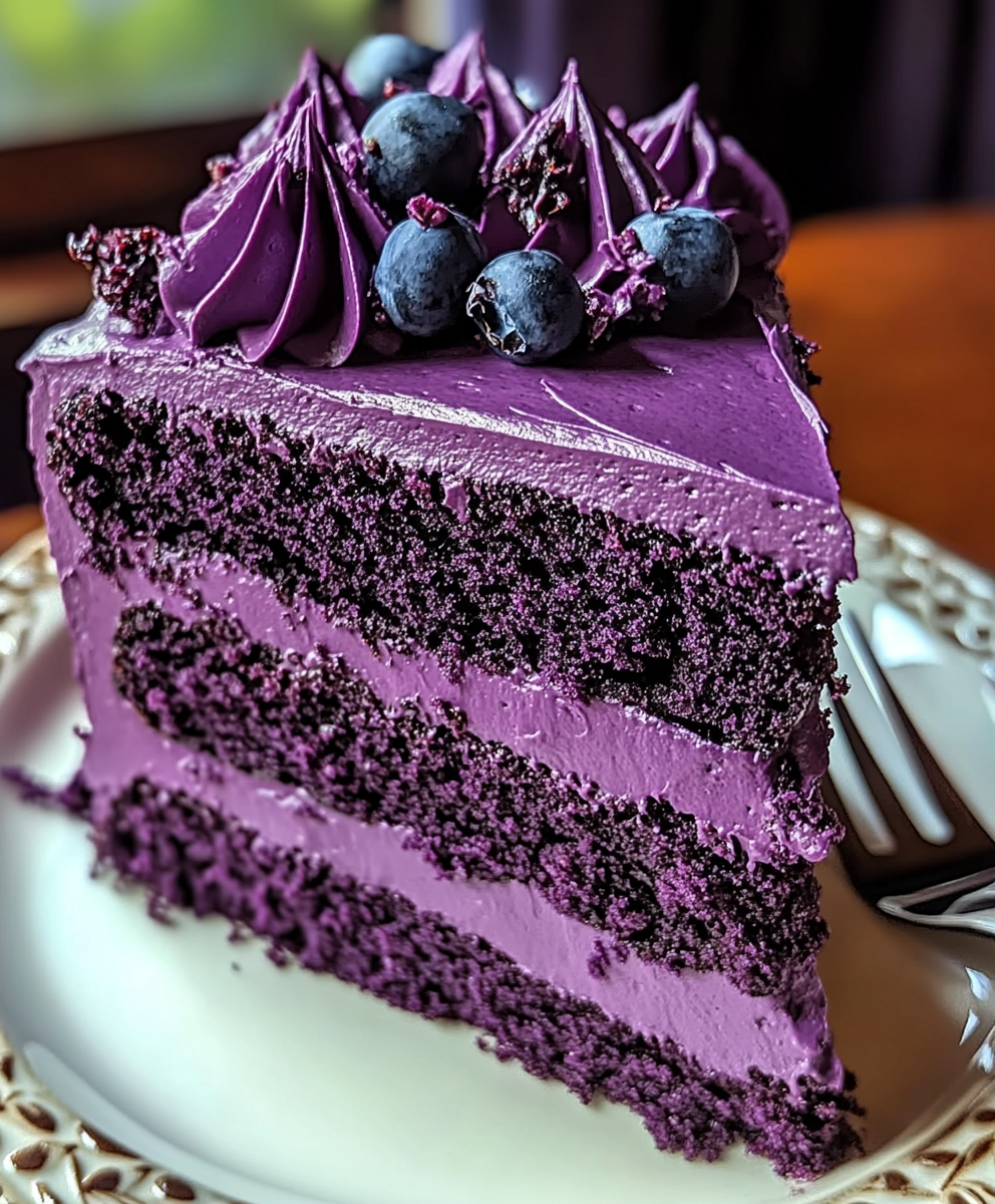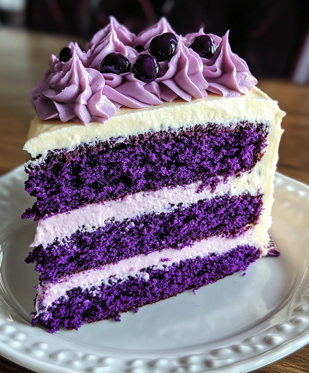the best Royal Purple Velvet Cake with Creamy Vanilla Frosting