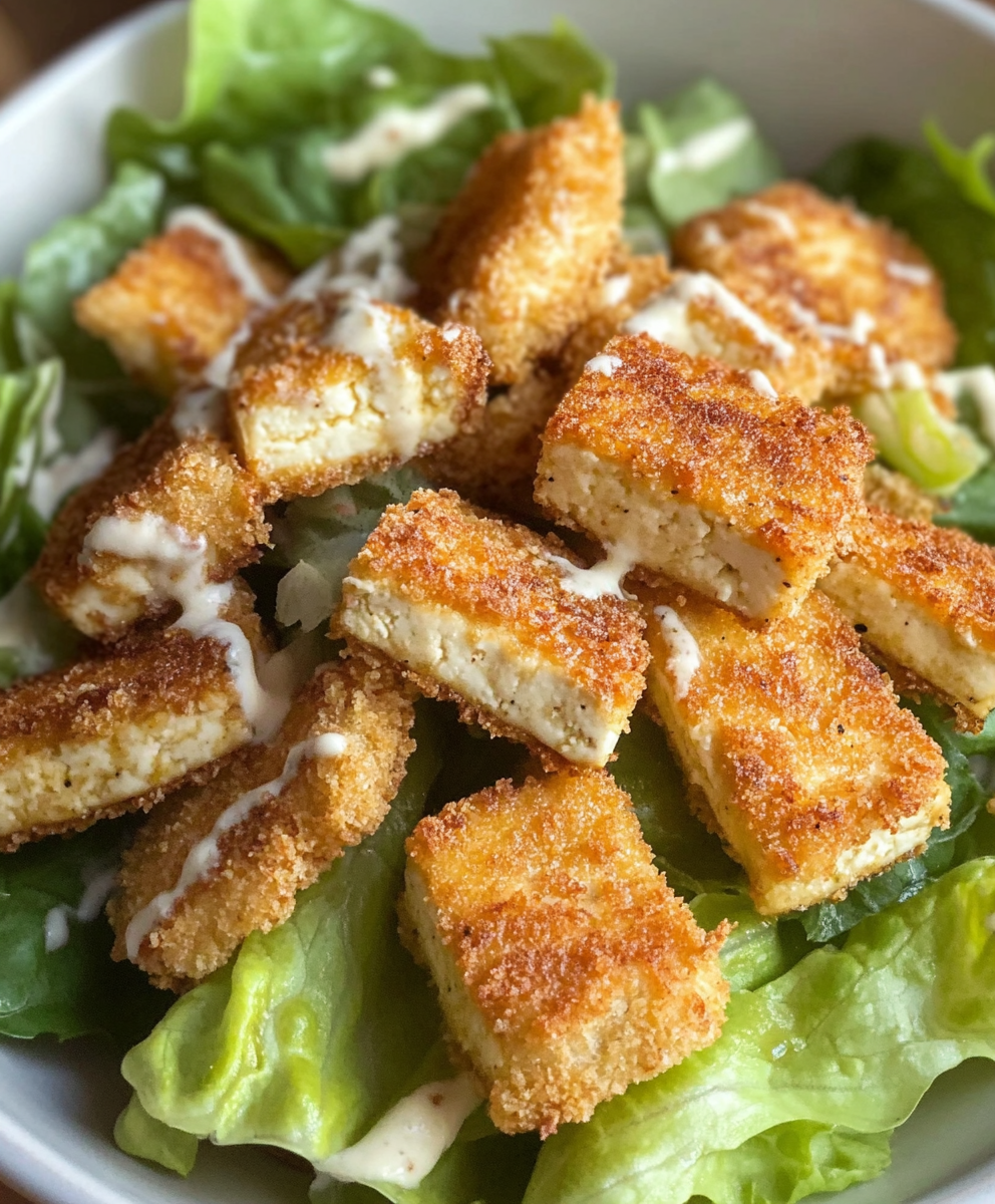 THE BEST Crispy Breaded Tofu Caesar Salad (Vegetarian-Friendly)