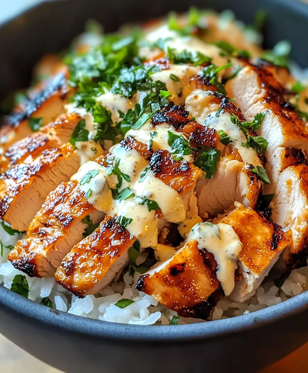 Chicken & Rice Bowls with Creamy Garlic Sauce