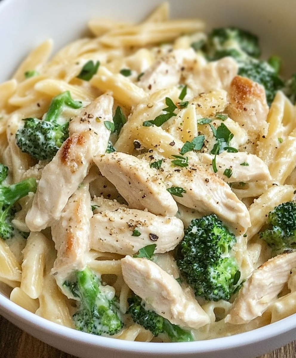 Easy, Creamy, Garlicky Chicken and Broccoli Pasta