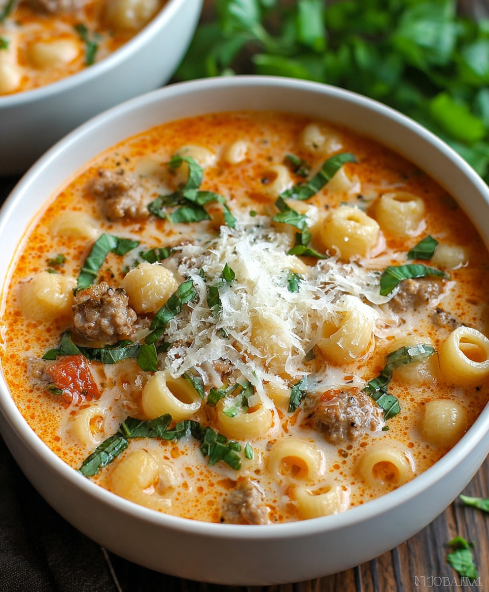 Creamy Parmesan Italian Sausage Ditalini Soup