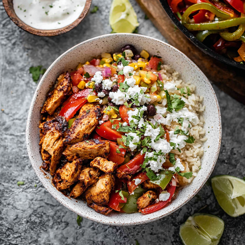 🌮 These Chicken Fajita Bowls are bold, fresh, and endlessly versatile—a Tex-Mex favorite that’s perfect for busy weeknights or meal prep!