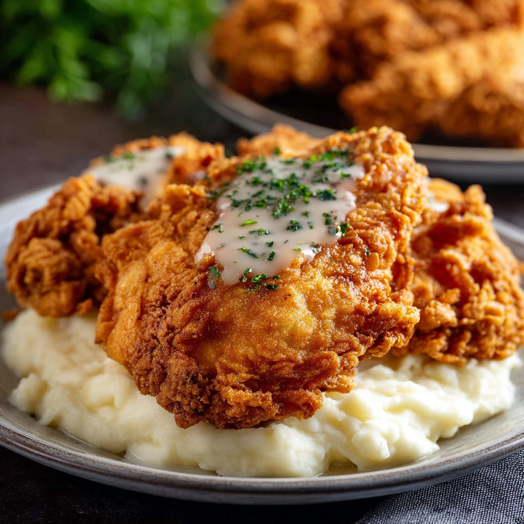 Perfectly seasoned, crunchy golden chicken coated in a rich, savory gravy—comfort food at its finest.