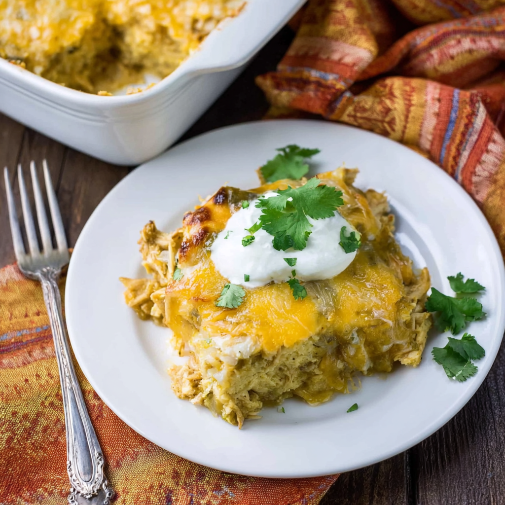 That’s why this Chile Verde Chicken Tamale Casserole is such a game-changer. It delivers all the authentic flavor of traditional tamales — soft masa, zesty chile verde chicken, melty cheese — but skips all the complicated prep. No husks, no wrapping, no steaming. Just layer, bake, and enjoy!