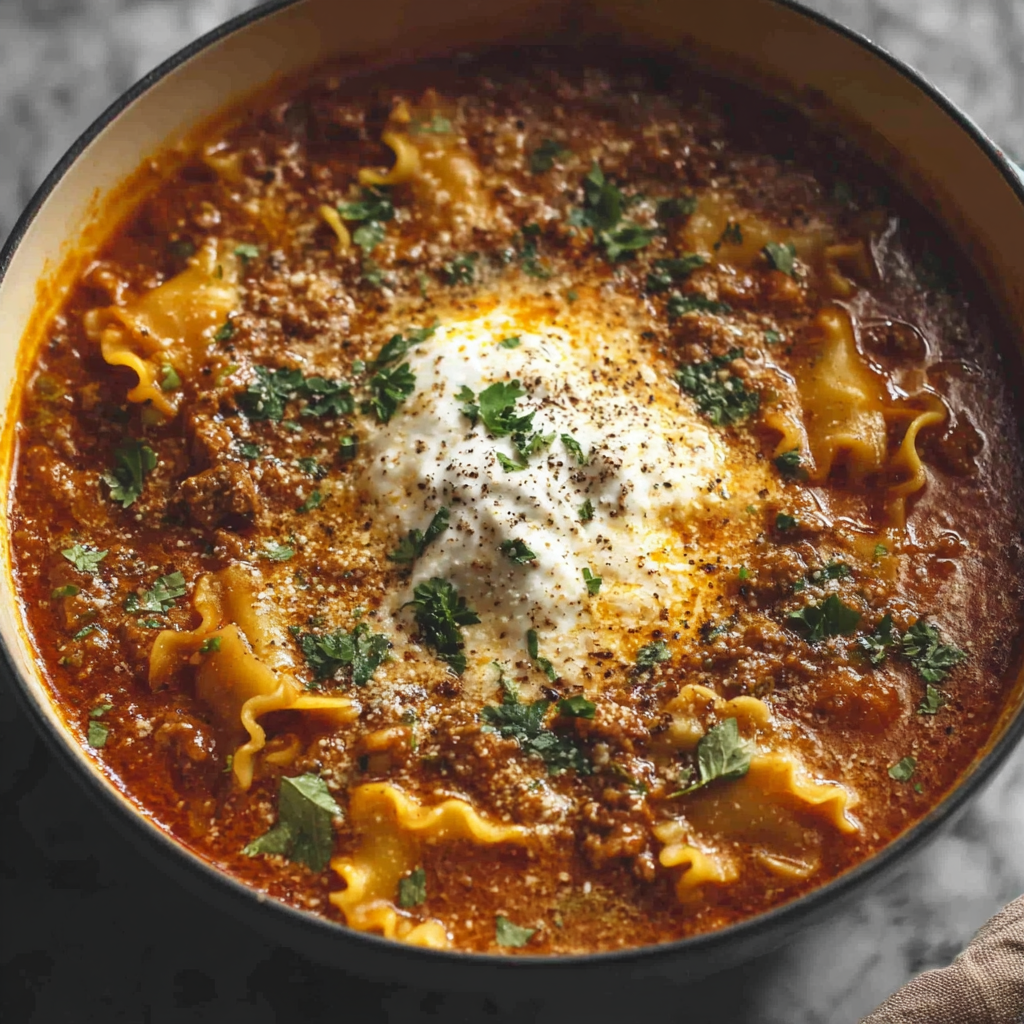 Imagine a flavorful tomato base simmering with garlic, herbs, and perfectly browned beef. Lasagna noodles soften right in the pot while creamy ricotta and gooey mozzarella melt into every bite. It’s hearty, satisfying, and unbelievably easy—exactly what comfort food should be.
