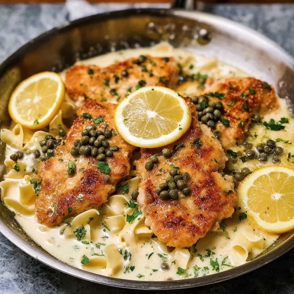 - Creamy Lemon Sauce – A silky sauce made with fresh lemon juice, broth, cream, and briny capers that adds the perfect balance of tang and richness.