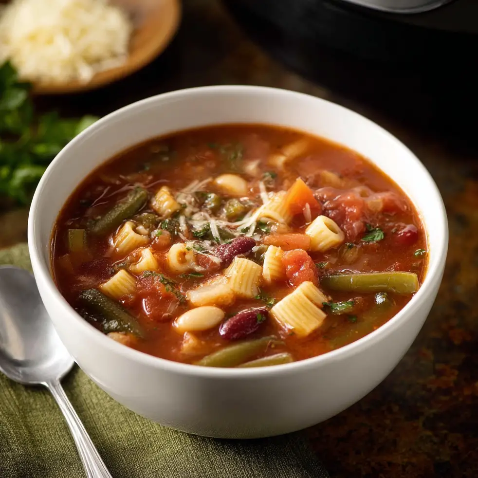 This Crock Pot Minestrone Soup is hearty, comforting, and bursting with fresh flavor — all made with very little effort! Packed with colorful vegetables, beans, and pasta, this easy slow cooker recipe is the perfect way to enjoy a warm, satisfying bowl of homemade soup without spending all day in the kitchen.