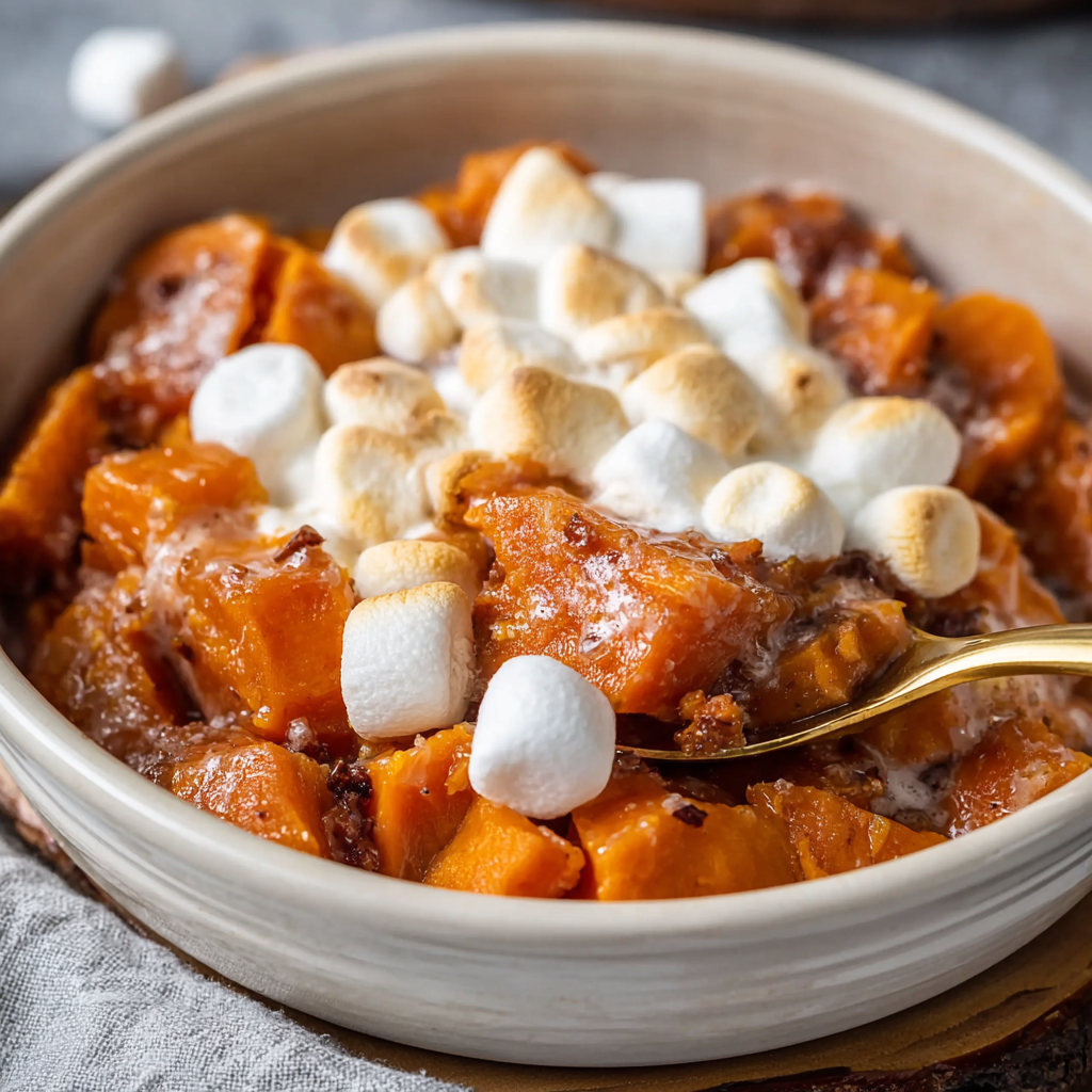 If you grew up loving sweet potato casserole during the holidays, this Crockpot Sweet Potatoes with Marshmallows recipe will take you straight back to your childhood. Tender sweet potato cubes are slow cooked with butter, maple syrup, brown sugar, and warm fall spices—then topped with melty mini marshmallows for the coziest Thanksgiving side dish ever.