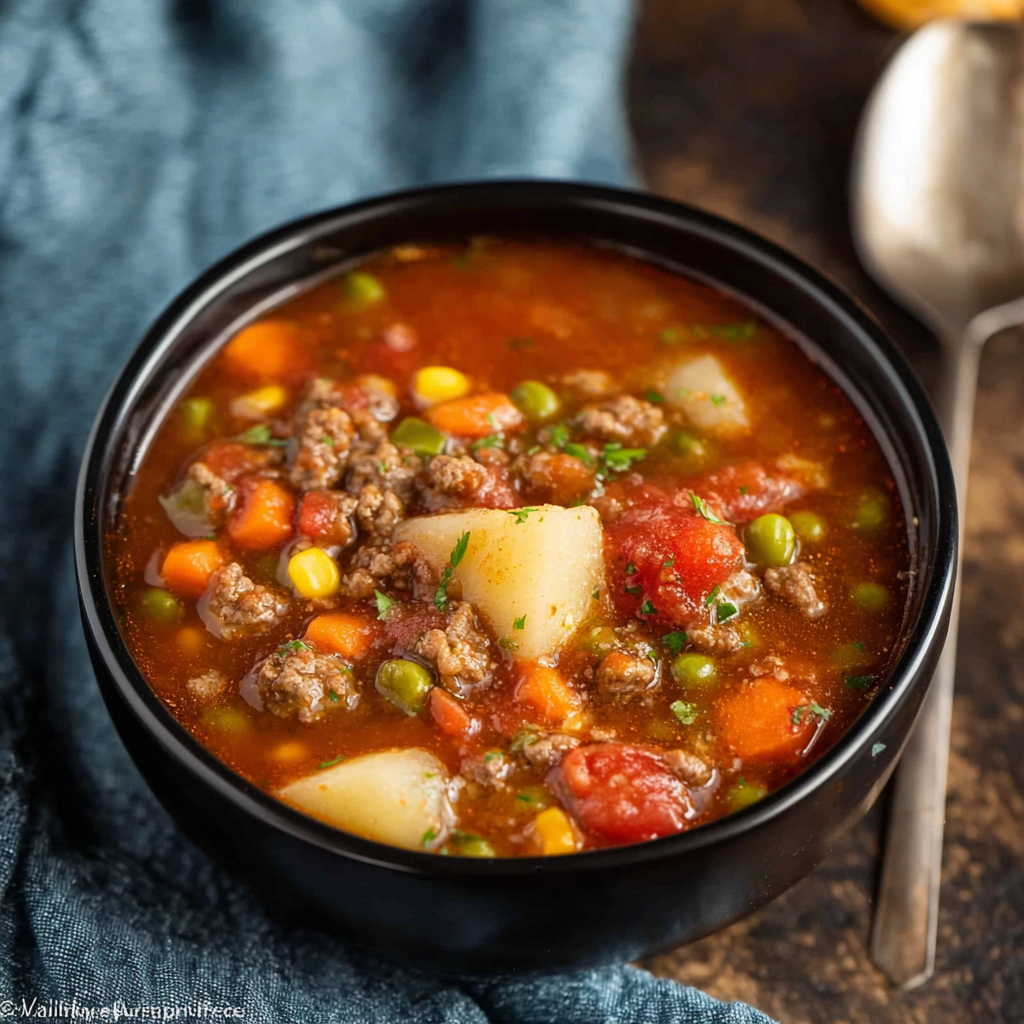 This Crockpot Vegetable Beef Soup is the ultimate comfort food — hearty, flavorful, and incredibly easy to make! 🥕🥔🥩