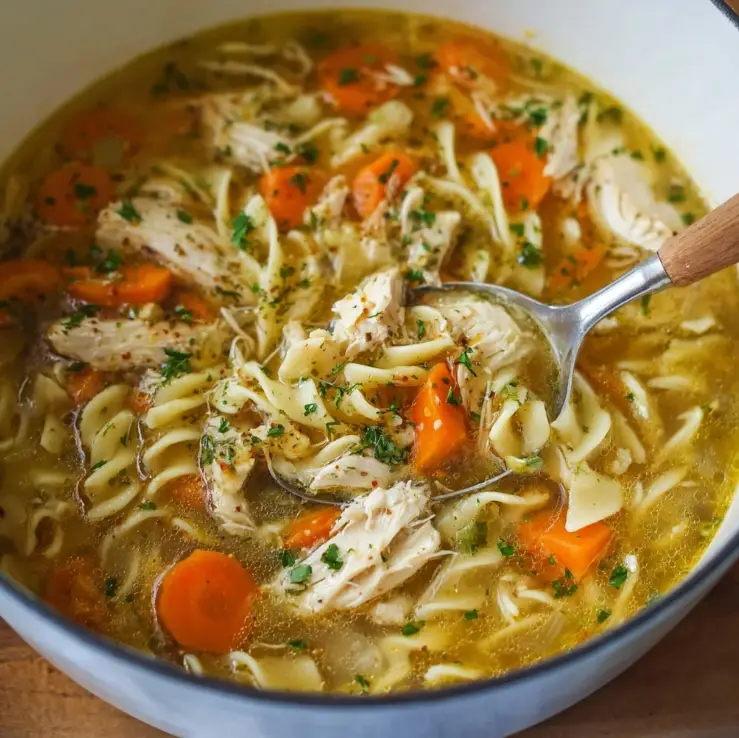This homestyle chicken noodle soup is filled with tender chicken, soft noodles, vegetables, and herbs. It’s the ultimate comfort food—perfect for cold days, busy nights, or anytime you want a warm, nourishing meal.