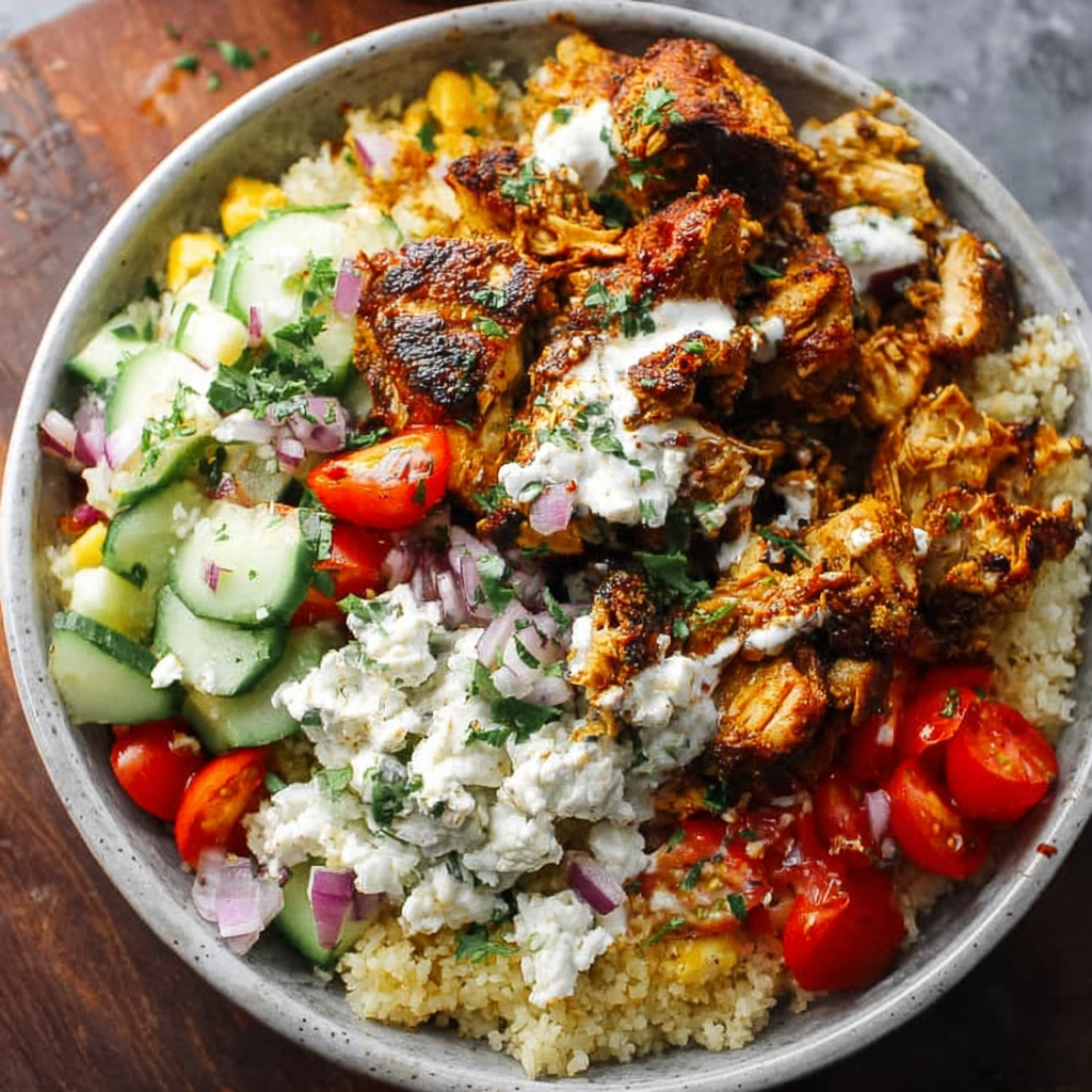 These Chicken Shawarma Bowls bring bold Middle Eastern-inspired flavors together in one fresh, protein-packed meal. Juicy roasted chicken, crisp vegetables, fluffy rice, and creamy sauces all layered into a bowl—it’s comfort food that feels light, nourishing, and satisfying.