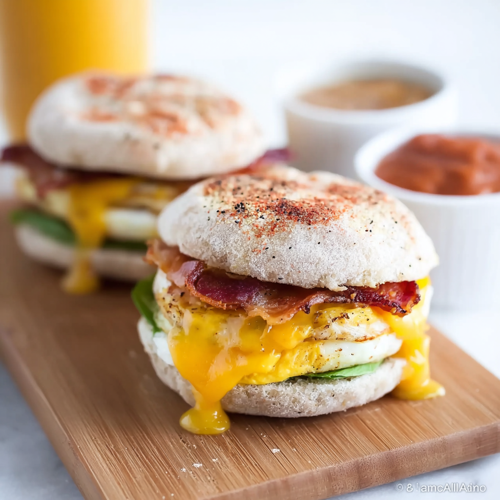 - Healthier Version: Use turkey bacon, egg whites, or whole-grain muffins.