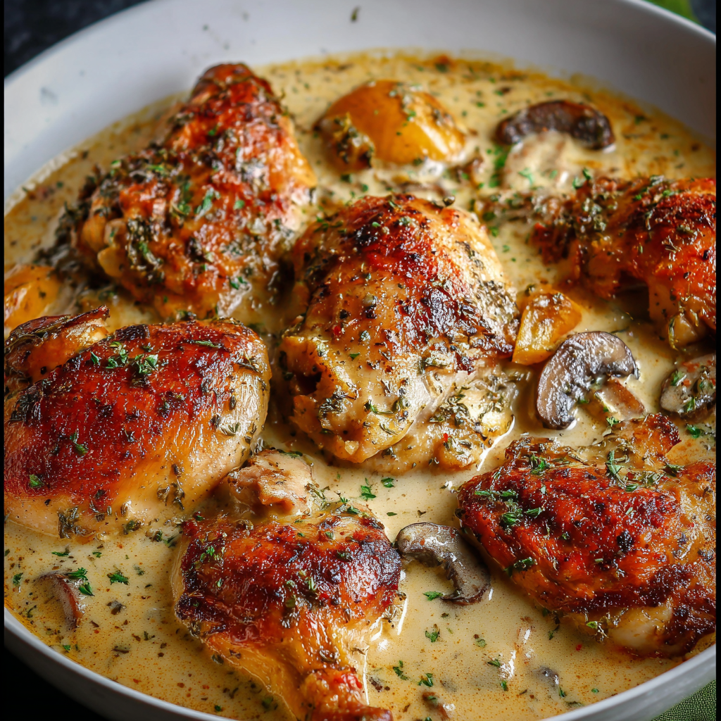 This Herb Roasted Chicken in Creamy White Wine Sauce is a dish that feels both comforting and elegant. With tender roasted chicken, hearty potatoes, and a luxurious mushroom wine sauce, it’s a recipe you’ll turn to again and again—whether for weeknight comfort or holiday celebrations.