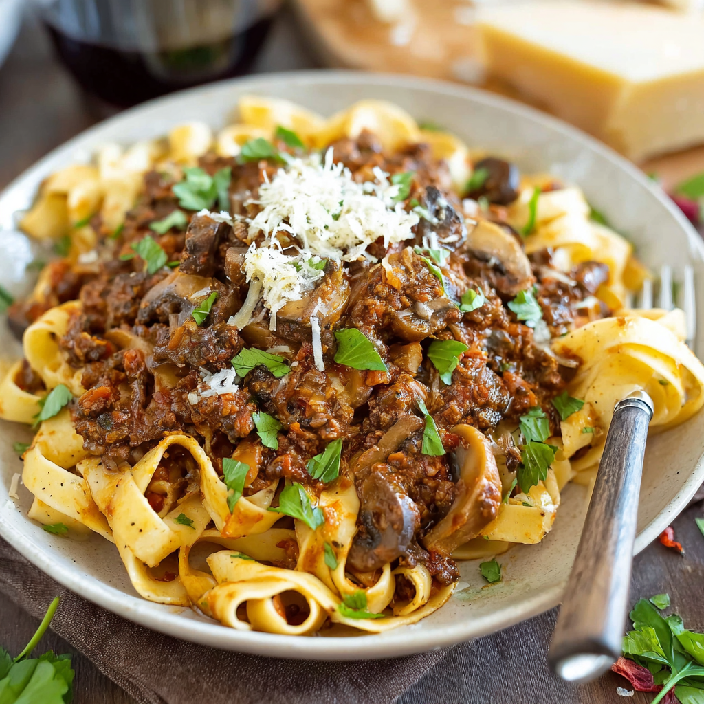 If you love Italian comfort food but want a lighter, plant-forward option, this mushroom ragu is perfect. Using a mix of mushrooms, a rich tomato paste base, and aromatic vegetables, it creates a savory, thick, almost creamy sauce without any beef, cream, or butter. A splash of balsamic vinegar adds sweetness and depth while keeping sodium low.