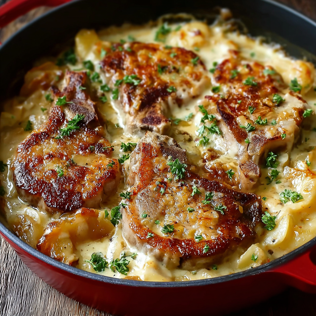 This casserole brings the best of Southern-style comfort food to your table. It combines simple, everyday ingredients — potatoes, onions, garlic, and pork — into something that feels truly special. The creamy sauce, melted cheese, and tender pork chops come together in a way that feels like a hug on a plate.
