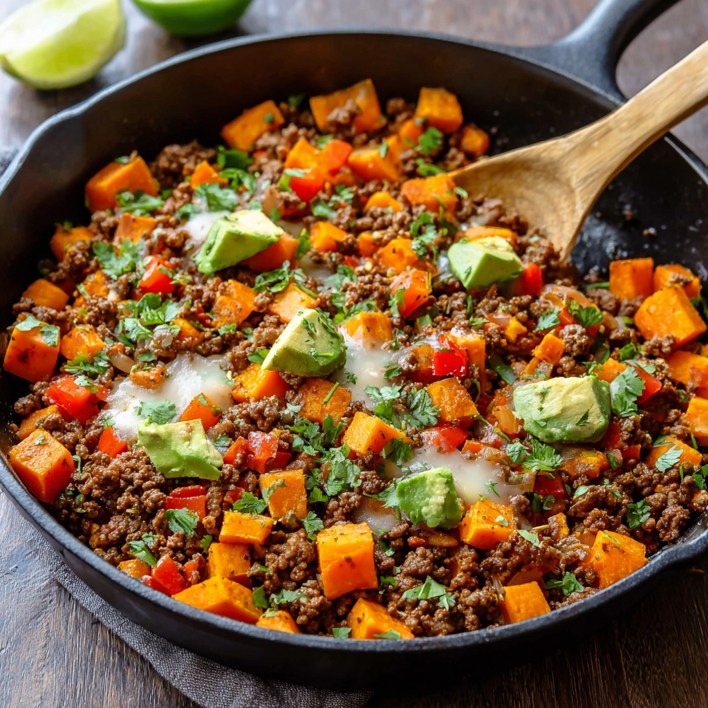 This Southwest Ground Beef and Sweet Potato Skillet is a hearty, protein-packed meal that comes together in just one pan! Featuring seasoned ground beef, tender sweet potatoes, and bold Southwestern spices, it’s full of flavor and nutrition. Whether you’re looking for a quick weeknight dinner, a meal-prep favorite, or even a savory breakfast topped with a fried egg, this skillet is a true crowd-pleaser.
