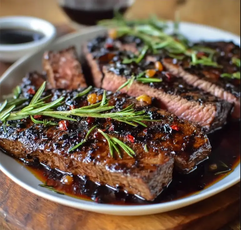 This Sweet Balsamic Marinated Steak is the perfect blend of savory, sweet, and tangy flavors — a restaurant-quality meal you can make right at home. A tender steak is marinated in a rich mix of balsamic vinegar, soy sauce, brown sugar, garlic, rosemary, and olive oil, then seared to perfection for a caramelized crust and juicy center.