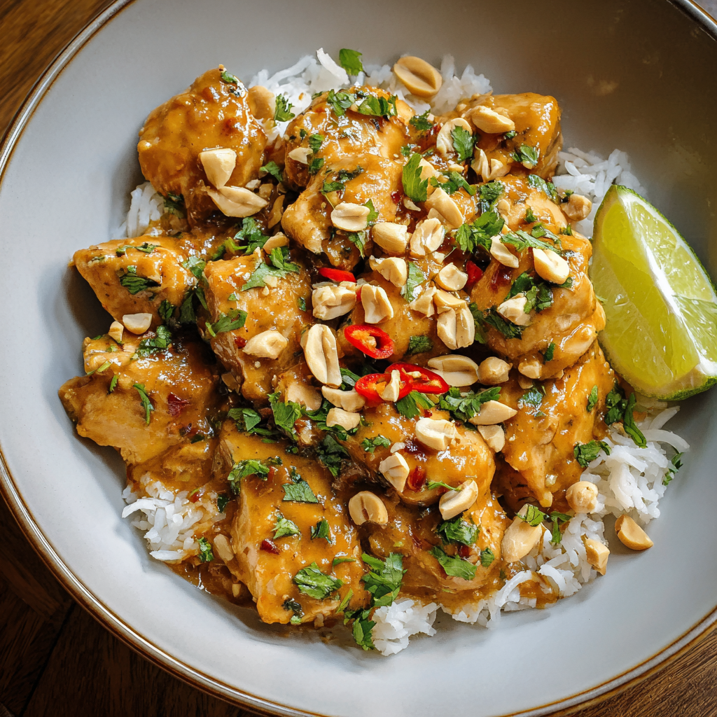 Transport your taste buds straight to the streets of Thailand with this Thai Peanut Chicken—a creamy, slightly spicy dish featuring tender chicken coated in a rich, nutty peanut sauce. The combination of peanut butter, soy sauce, ginger, garlic, and a hint of sriracha creates a sauce that’s both savory and slightly sweet, perfectly balancing bold flavors with comforting textures.