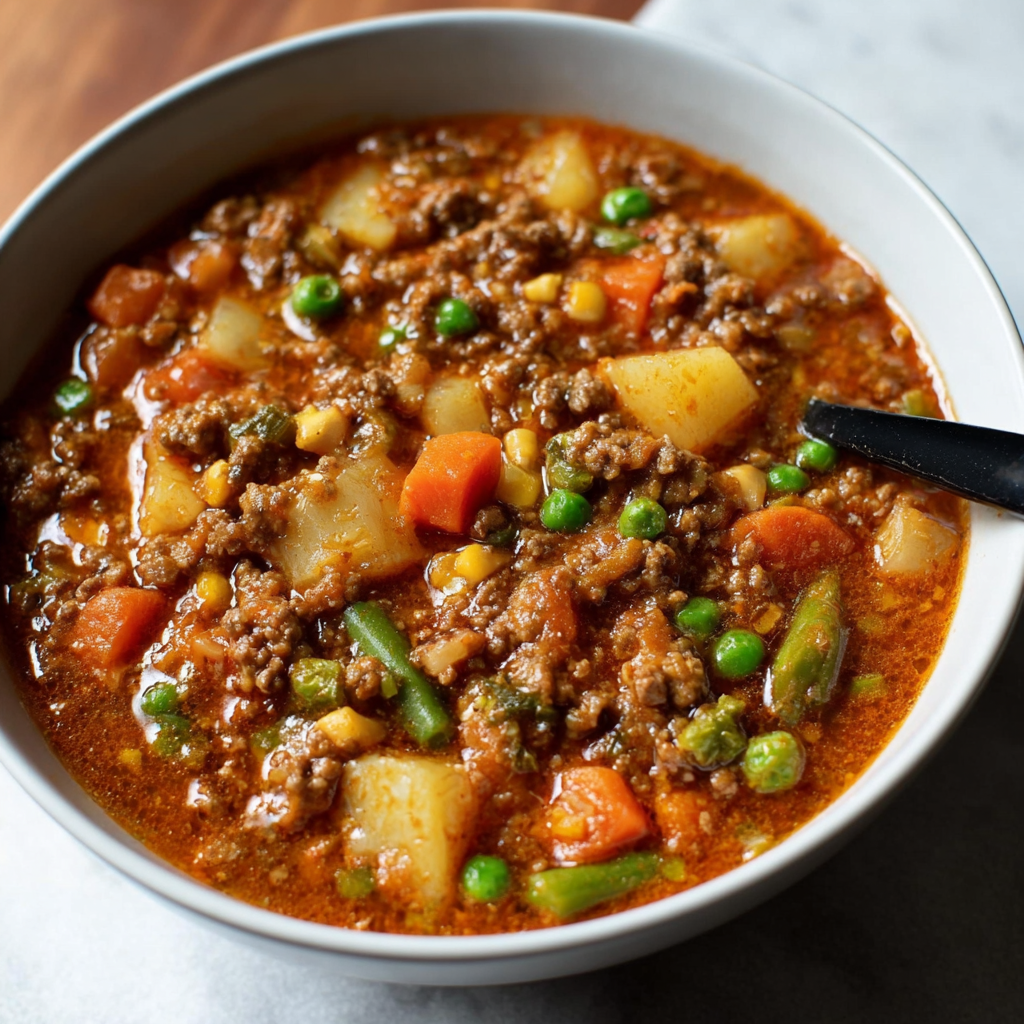 This easy Hamburger Stew is thick, comforting, and made with everyday, affordable ingredients. A flavorful one‑pot meal that the whole family will devour—ready in about an hour and perfect for busy evenings.