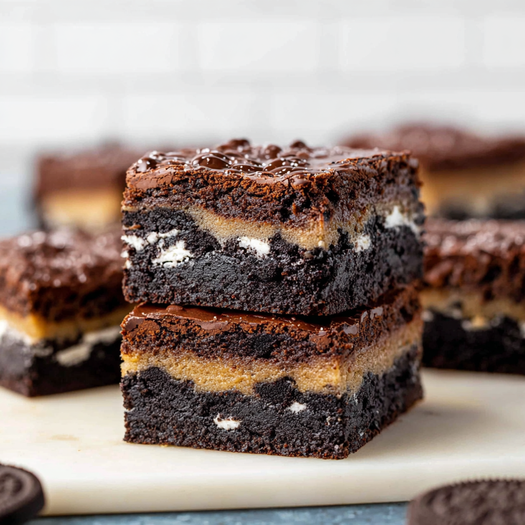 These Cookie Oreo Brownies (also known as Slutty Brownies) are the ultimate over-the-top dessert! Each bite features three irresistible layers — a chewy chocolate chip cookie base, a middle layer of Oreo cookies, and a rich, fudgy brownie topping. Made completely from scratch, this recipe is a chocolate lover’s dream and easily one of the most decadent brownie desserts you’ll ever bake.